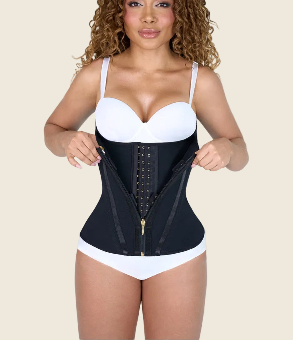 Moldea tu figura con la Cinturilla Xtreme de alta comprensión, diseñada para definir tu cintura y aplanar el abdomen. Incorpora 9 varillas internas, tres niveles de ajuste y cierre frontal que brindan un soporte firme y una mayor compresión, ofreciendo resultados inmediatos. Fabricado en Colombia por profesionales.